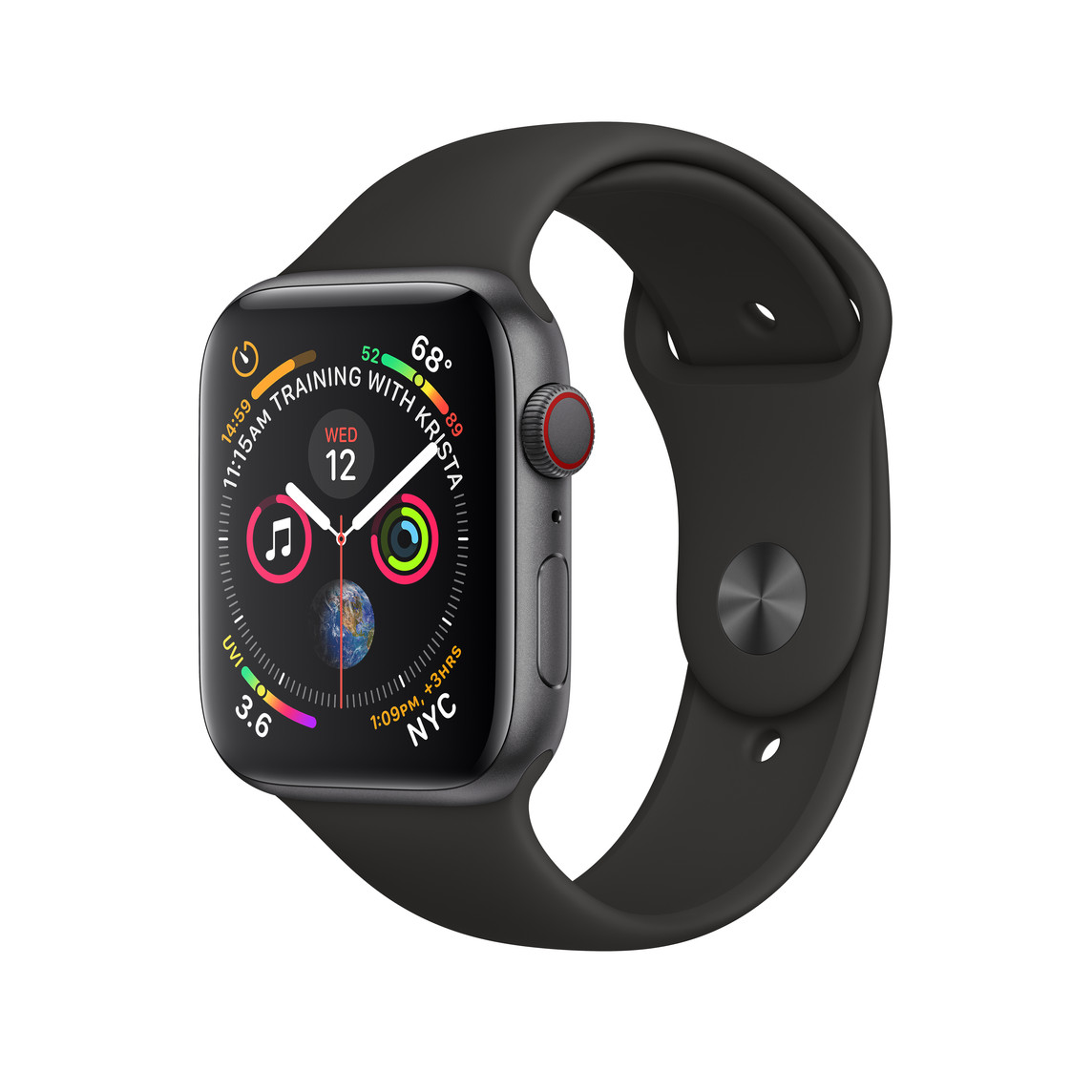 Display: LTPO OLED Retina 44mm 368-by-448 pixels 40mm 324-by-394 pixels Chip: S4 & W3 Battery: Up to 18 hours Other: GPS, GLONASS, Galileo, and QZSS Barometric altimeter Electrical heart sensor Optical heart sensor Improved accelerometer up to 32 g-forces Improved gyroscope Ambient light sensor Speaker 50 percent louder Microphone Apple Pay GymKit
